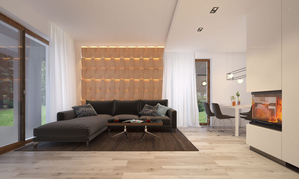 - Elewacja – tynk biały z klejem i siatką + płyta z włókien drzewnych Steico 10 cm Przekrój ściany w oddzielnym pliku 37 990 zł