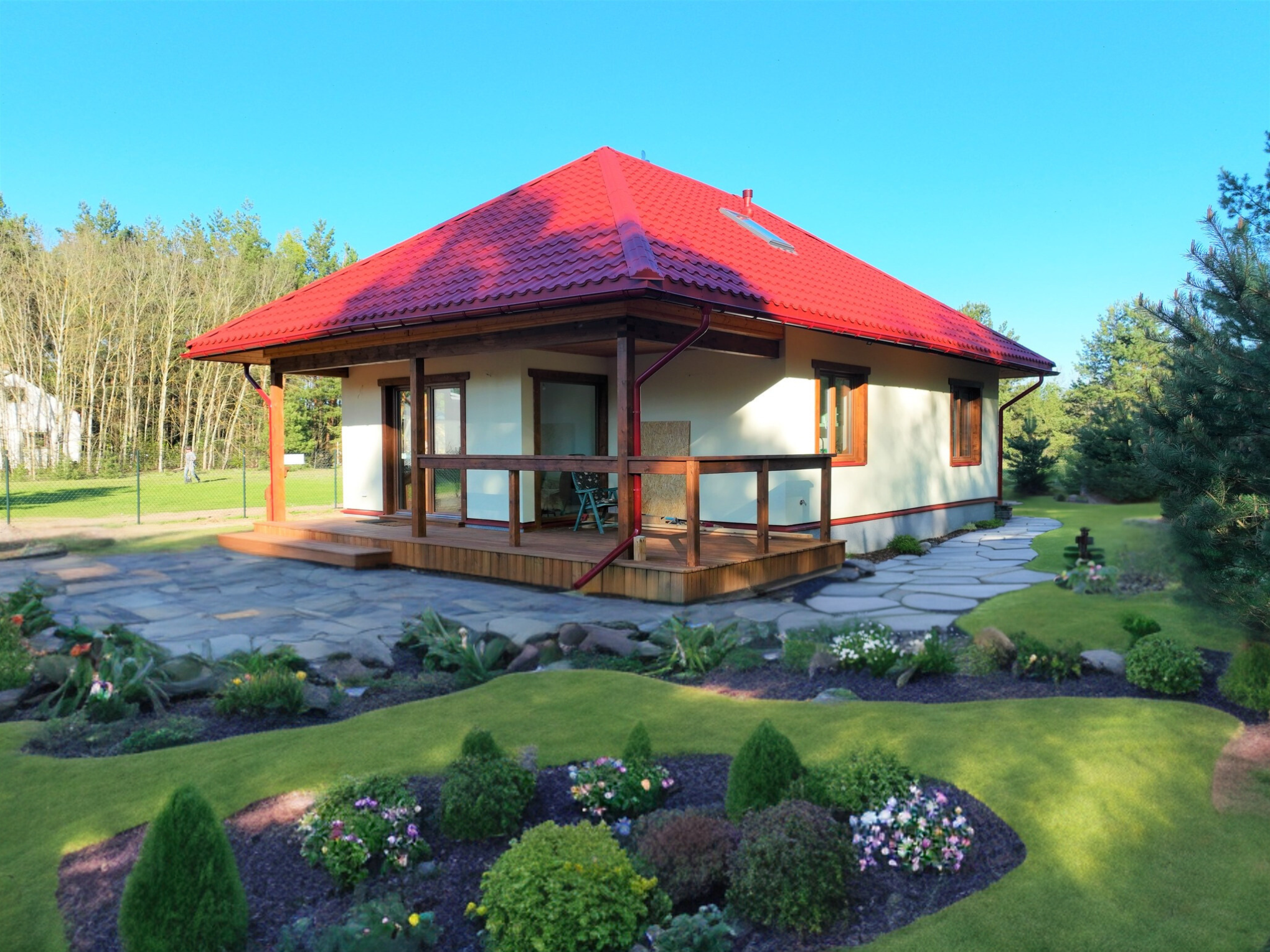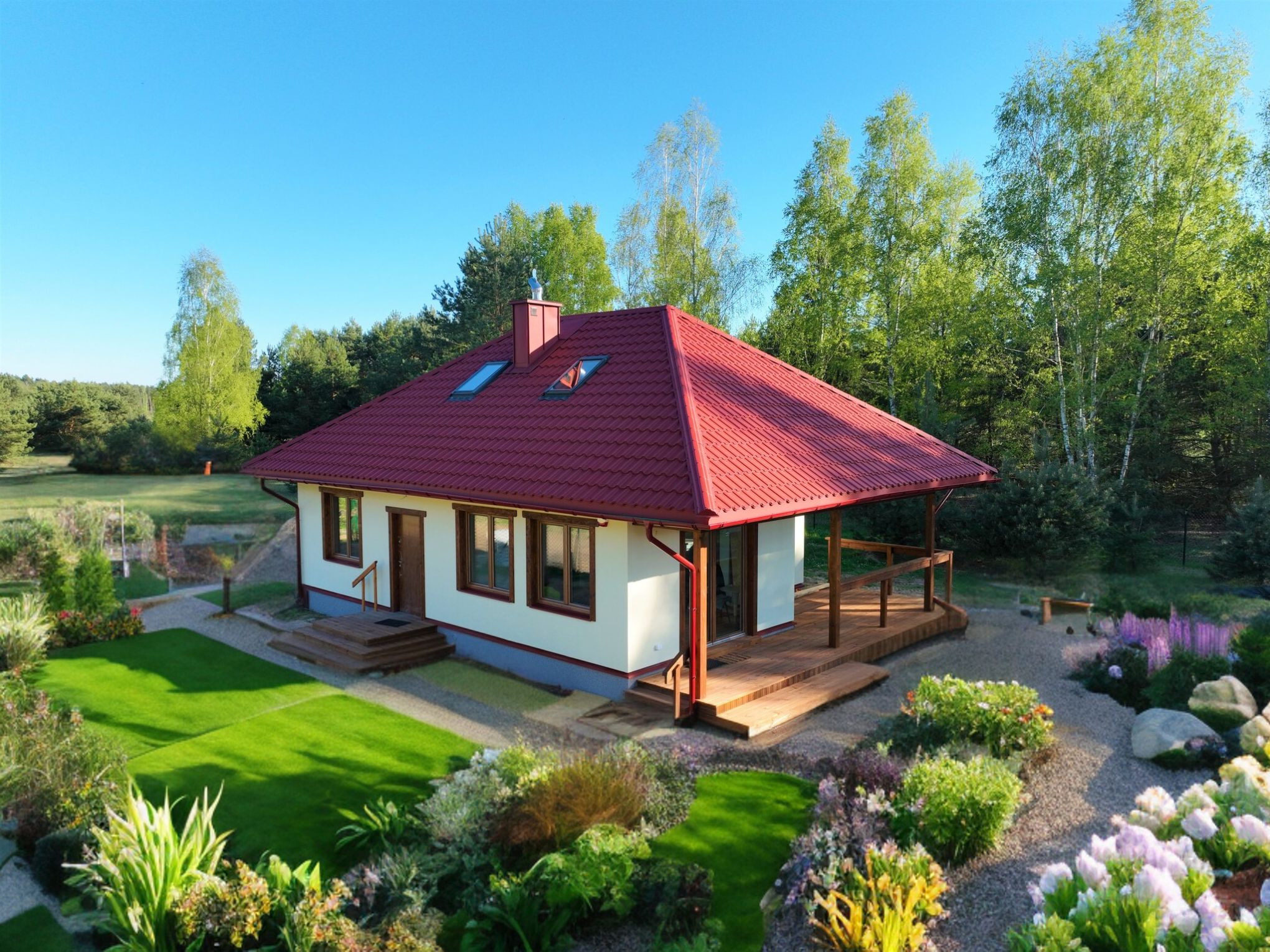 Dom Pogodny 64m2, to przestronny parterowy dom drewniany o bardzo dobrze zagospodarowanej powierzchni użytkowej. W domu znajdują się takie pomieszczenia jak salon, osobna kuchnia, trzy sypialnie oraz zadaszony taras. Dom jest oparty o konstrukcję szkieletową, elewacja wykonana jest “z balika”. Dom jest ocieplony, gotowy do zamieszkania przez cały rok. W tej samej cenie, możesz dowolnie zmienić układ środka.