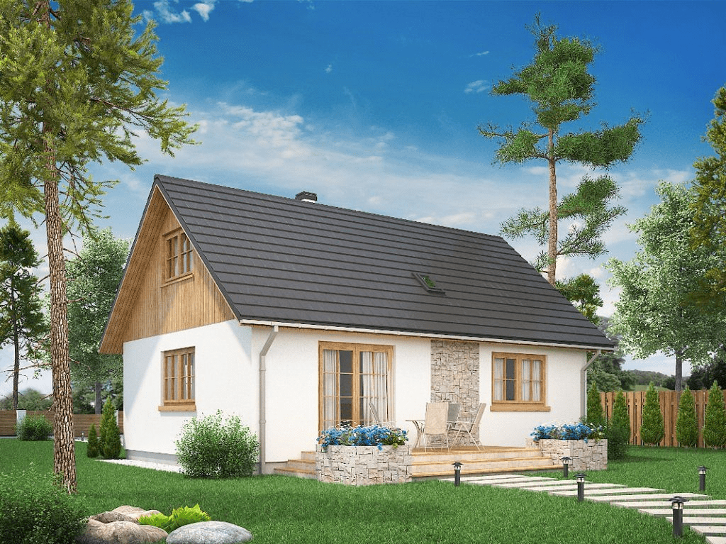 - Elewacja – tynk biały z klejem i siatką + płyta z włókien drzewnych Steico 10 cm + elementy elewacji drewnianej z deski 19 mm Przekrój ściany w oddzielnym pliku 40 279 zł